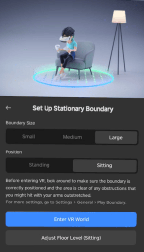 4. When you’re happy with the boundary area, select Enter VR World to start training with Pico Neo 3.