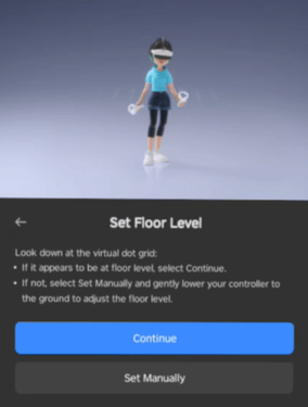- If the floor level does not appear to match the real floor, select Set Manually. Then touch the controller to the floor and pull the trigger.